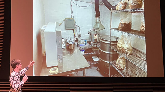 Additionally, Shoemaker is releasing an open-source compendium detailing his mycological research and methodologies. A hard copy will be exhibited and a digital version will be freely accessible. Shoemaker releases this document with the hope that others will carry his research forward, using fungi—an organic, versatile, and renewable resource—to pursue responsible technical and creative innovations.